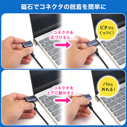 ※マグネットの接続向きは固定されており、コネクタを上下逆さまにして接続することはできません。