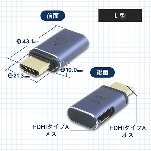 ●コネクタ形状:HDMI(タイプA/オス) - HDMI(タイプA/メス)●サイズ:約W21.3 x H10.0 x D43.1 mm