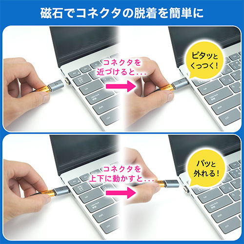 ■ワンタッチでコネクタの脱着が可能USB Type-Cケーブルと本製品を組み合わせることにより機器とケーブルの脱着を磁石の力でスムーズに行えるようになります。