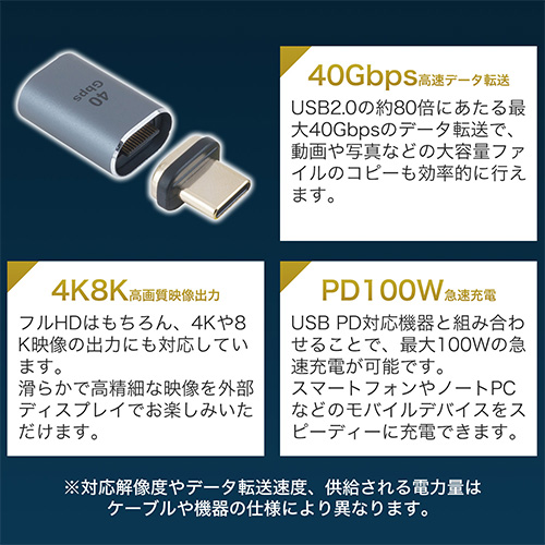 ※対応解像度やデータ転送速度、供給される電力量はケーブルや機器の仕様により異なります。
