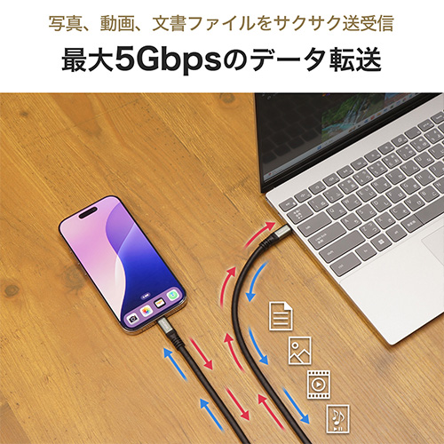 ●コネクタ形状:USB Type-C(オス) - USB Type-C(オス)●規格:USB 5Gbps(USB3.2 Gen1)