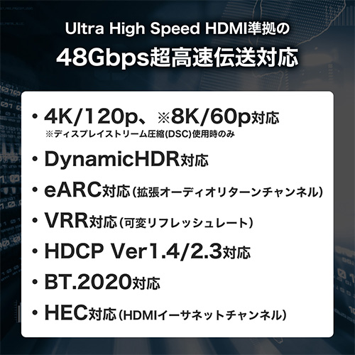 ●HDMI 2.1(ウルトラハイスピード)規格準拠品●48Gbps伝送対応