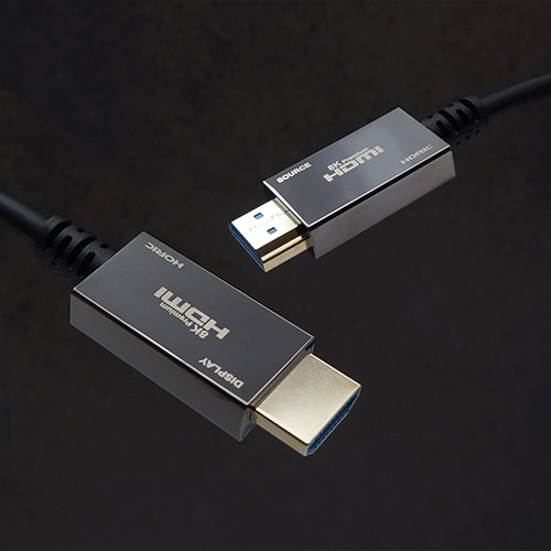 ■光ファイバー+銅線のハイブリット構造メインの信号線にガラス製光ファイバーを使用したハイブリッドHDMIケーブルです。銅線のみのHDMIケーブルに比べて、伝送損失が少なくノイズの影響を受けにくいため、安定した長距離伝送が可能です。