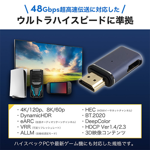 4K/120pや8K/60p(DSC)の高画質映像の出力に対応しています。