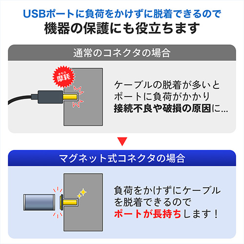 ■ワンタッチでコネクタの脱着が可能USB Type-Cケーブルと本製品を組み合わせることにより機器とケーブルの脱着を磁石の力でスムーズに行えるようになります。