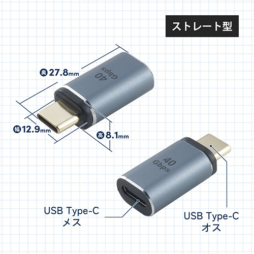 ●コネクタ形状:USB Type-C(オス) - USB Type-C(メス)●サイズ:約W12.9 x H8.1 x D27.8 mm