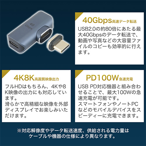 ※対応解像度やデータ転送速度、供給される電力量はケーブルや機器の仕様により異なります。