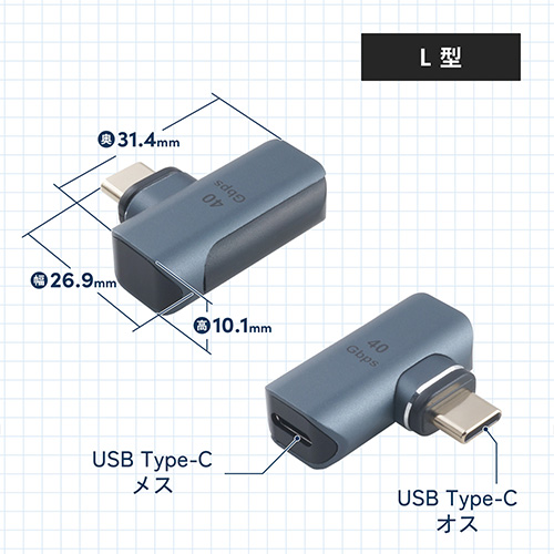 【USB Type-Cマグネット変換アダプタ L型 UCM-092L】