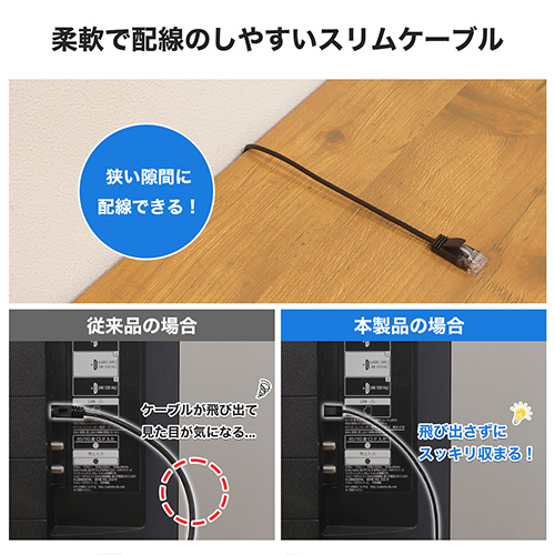 【LANケーブル カテゴリー6A対応 スリムタイプ 5m ブラック LC50-110SB】